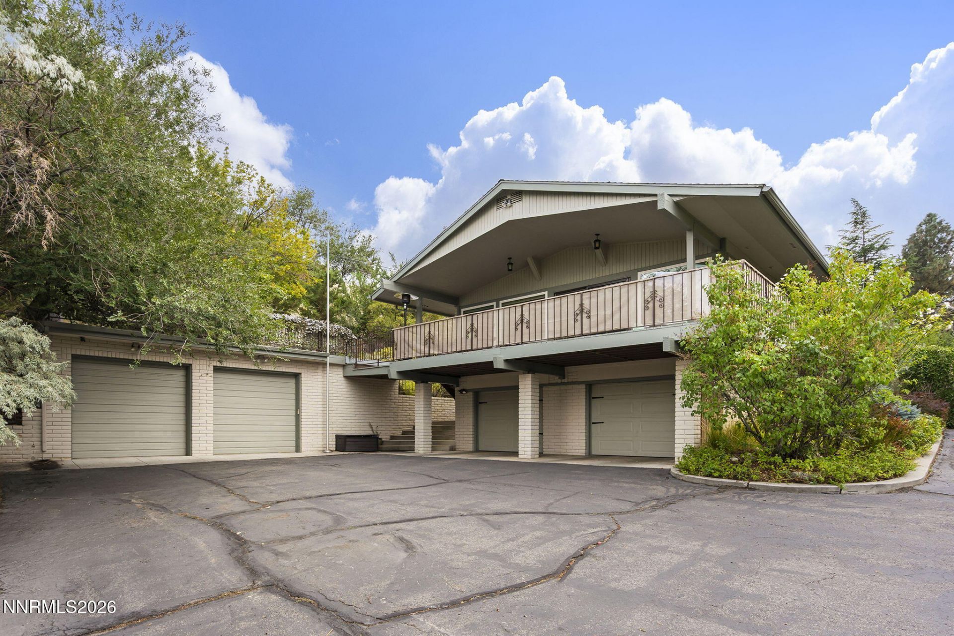 Tucked into a private, tree-lined setting in desirable Southwest Reno with no HOA, this distinctive split-level home blends retro-modern character with thoughtful updates and flexible living spaces. Natural light fills the main living area through expansive, energy-efficient windows that were replaced and modernized within the last year, creating a bright and inviting atmosphere. An elevated deck captures peaceful mountain and city views, with even more expansive downtown views in the fall when the leaves drop, plus the added bonus of fireworks from Reno Aces games often visible right from the porch. The open-concept kitchen flows seamlessly into the dining and living areas, perfect for everyday living and entertaining, featuring updated finishes and a classic Viking gas range. Designed with entertaining in mind, the home offers multiple living spaces, including a cozy lower-level family room with a brick fireplace and built-ins, along with well over 1,000 square feet of elevated deck space, estimated closer to 1,500 square feet, creating incredible indoor-outdoor flow. Set on a private 0.41-acre lot, the fully fenced and gated property features mature landscaping, a terraced backyard, and fruit trees including apple, apricot, and plum. Original hardwood floors, refinished in 2014, add warmth throughout, while recent improvements include in front landscaping in 2025 and updated fencing and gates approximately five years old. Two separate two-car garages, one attached and one detached, heated, provide exceptional flexibility for storage, hobbies, or additional vehicles. Major systems, including furnaces, AC condenser, water heater, and Bosch dishwasher, are all less than five years old. A rare blend of privacy, character, views, and functionality, just minutes from everyday Reno amenities. Welcome home
