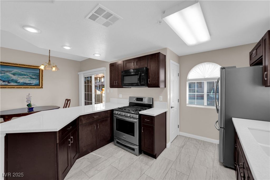 This first-floor condo offers a clean, functional layout with modern tile flooring and quartz countertops. The primary suite features two sizable walk-in closets. Both bedrooms are well proportioned and positioned for privacy. Two patios create flexible outdoor space for relaxing or entertaining, and a rare two-car garage adds real value with enclosed parking and extra storage. Located in an established Henderson area with quick access to shopping, dining, and the freeway. This move-in-ready condo suits anyone seeking convenience without sacrificing space.
