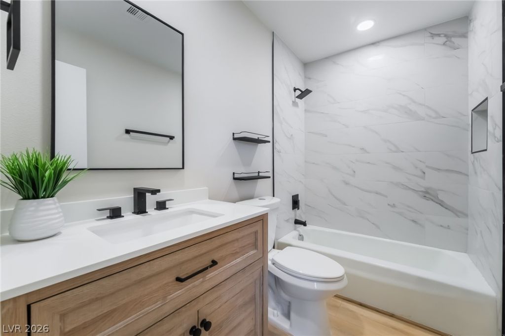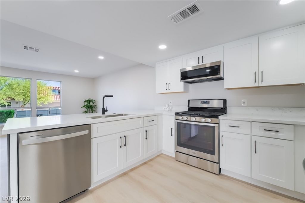 Another New Life renovation! Experience refined, move-in ready living in this fully renovated 2-story townhouse. ALL-NEW PLUMBING runs throughout the entire home. Four bedrooms and three baths combine modern comfort with thoughtful design. This gorgeous renovation offers luxury vinyl flooring, contemporary recessed lighting, and fresh texture and paint in the entire home. The chef's kitchen shines with custom white cabinetry, quartz countertops, and stainless steel appliances. Both glamorous bathrooms feature large wall tiles, new vanities, updated flooring, and contemporary lighting. Downstairs, two bedrooms including the primary offer convenient single-level living options. Outside, enjoy a private courtyard paradise with a fire pit and ambient lighting. A 2-car garage adds convenient storage and access. Schedule a tour today!