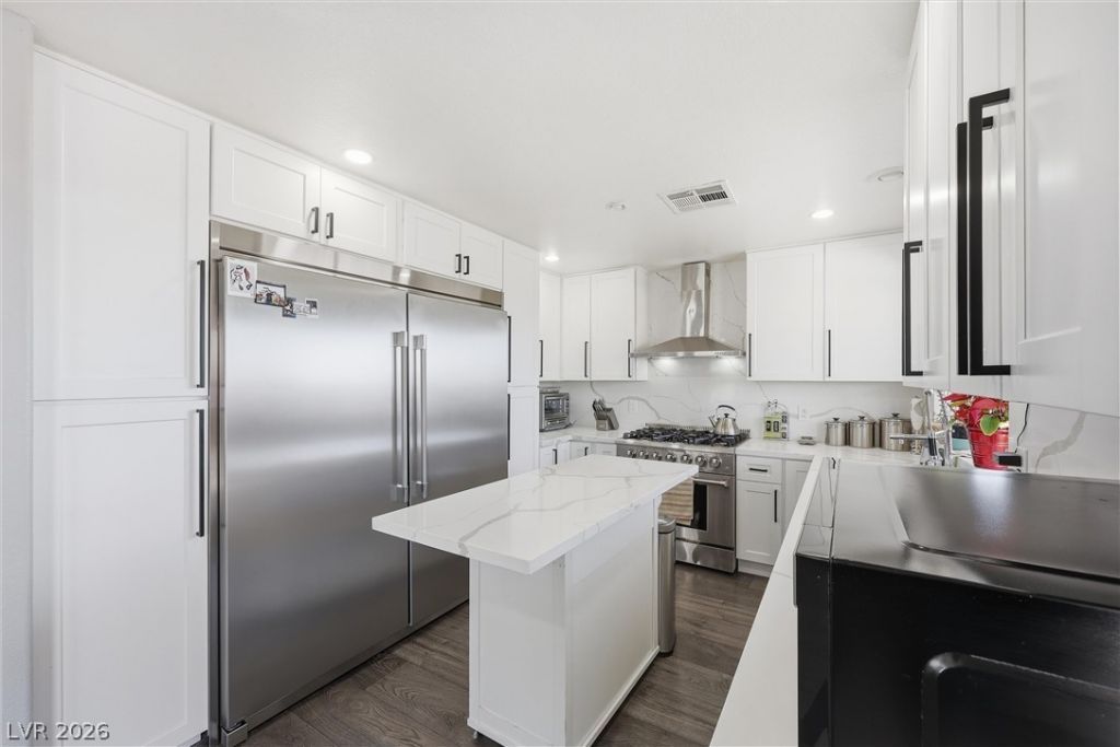 Five-bedroom home in the desirable Lone Mountain area, set on an oversized lot with rare dual RV parking offering exceptional access and flexibility for recreational vehicles, trailers, or additional storage. No HOA. Interior features include new flooring throughout and a full remodeled spacious kitchen with new stainless steel appliances highlighted by an oversized, high-end refrigerator. The expansive lot provides ample room for outdoor use, entertaining, or future improvements. Conveniently located near the 215, shopping, dining, and outdoor trails.