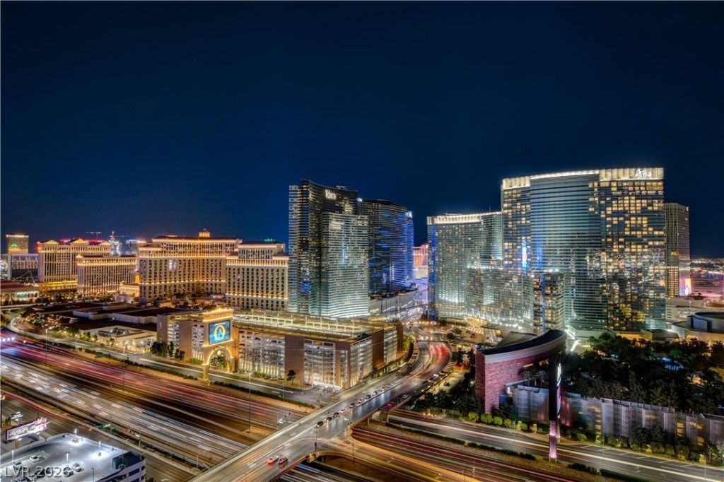 Experience unmatched privacy, luxury, and comfort in this rare corner end-cap residence featuring 2,181 sq ft of beautifully curated living space. At the heart of the open-concept floor plan is a chef's kitchen appointed with granite countertops, seamlessly flowing into a spacious great room and a separate formal dining area. The expansive primary suite offers a true retreat, complete with a spa-inspired ensuite bathroom featuring dual vanities, a soaking tub, and a separate walk-in shower. Second bedroom has a dedicated bathroom and breathtaking views. Enjoy resort-style living with full-service amenities including 24-hour security, concierge, valet, limousine service, a state-of-the-art fitness center, resort pool and spa, racquetball and squash courts, sauna, and yoga studio. This residence is enhanced by unique art pieces, high-end furnishings, and a fully equipped kitchen. Take in breathtaking 180-degree Strip views from two private balconies.