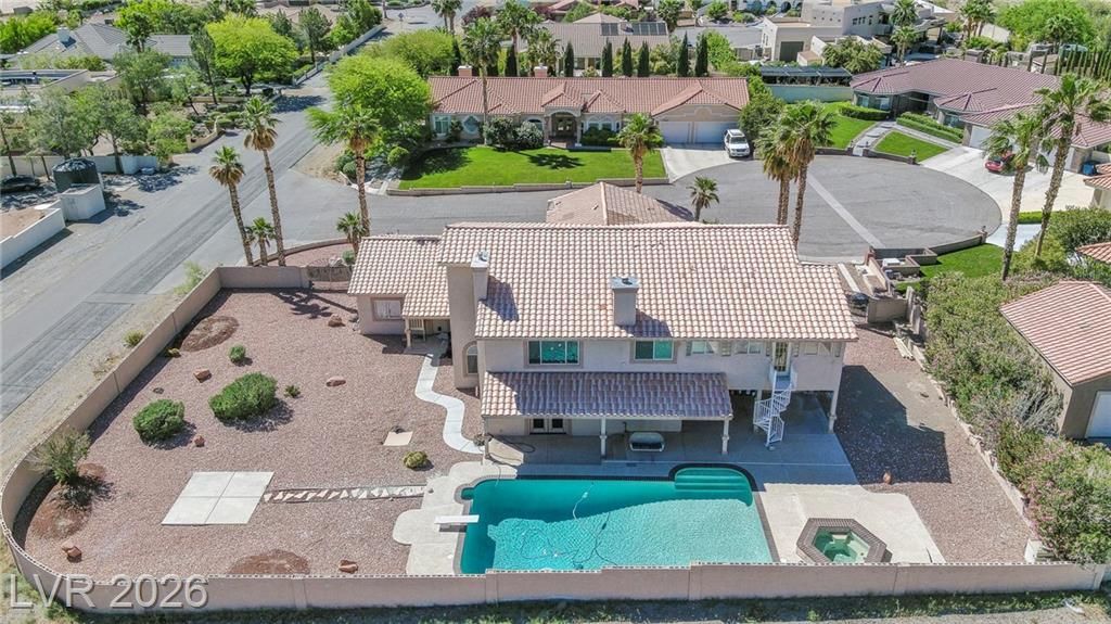 Incredible Opportunity! Massive floorplan at under $185 a Sqft in this area is unheard of! Quiet 4 home cul-de-sac near Lone Mountain on 1/2 acre lot size with Rv parking. NO HOA but Yes to Horses and well water at less than $30 a month! 4 Bedrooms + 2 Dens and 3.5 Baths, Gigantic Kitchen with plenty of usable cabinets. Large family room/dining room with a full bar, Dual Primary bedroom setup, One downstairs and a Grand Primary bedroom upstairs, with a bathroom bigger than my first house and comes complete with a Bidet! The sparkling pool includes a diving board and an oversized garage on a lot that has plenty of additional room to do what you like! If you are up for some remodeling this is for you!