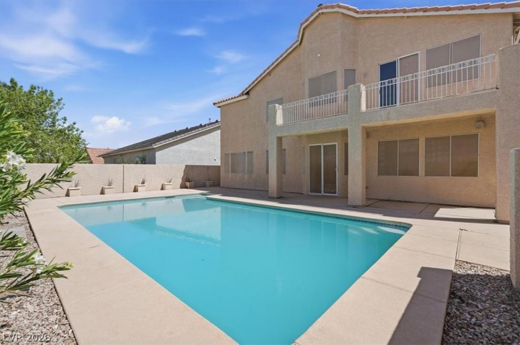 Spacious 4-bedroom, 4-bath home in desirable Silverado Ranch with a 3-car garage and solar-heated pool. This well-designed home features a formal living and dining room with vaulted ceilings, plus a separate family room with a cozy fireplace. The kitchen offers granite countertops, center island, double ovens, walk-in pantry, and a bright breakfast nook. The large primary suite includes a private balcony, oversized walk-in closet, dual sinks, makeup vanity, soaking tub, and separate shower. Bedrooms 2 and 3 share a Jack-and-Jill bath, while bedroom 4 has its own ensuite. Enjoy a private backyard with covered patio and sparkling pool, perfect for relaxing or entertaining. All appliances included.