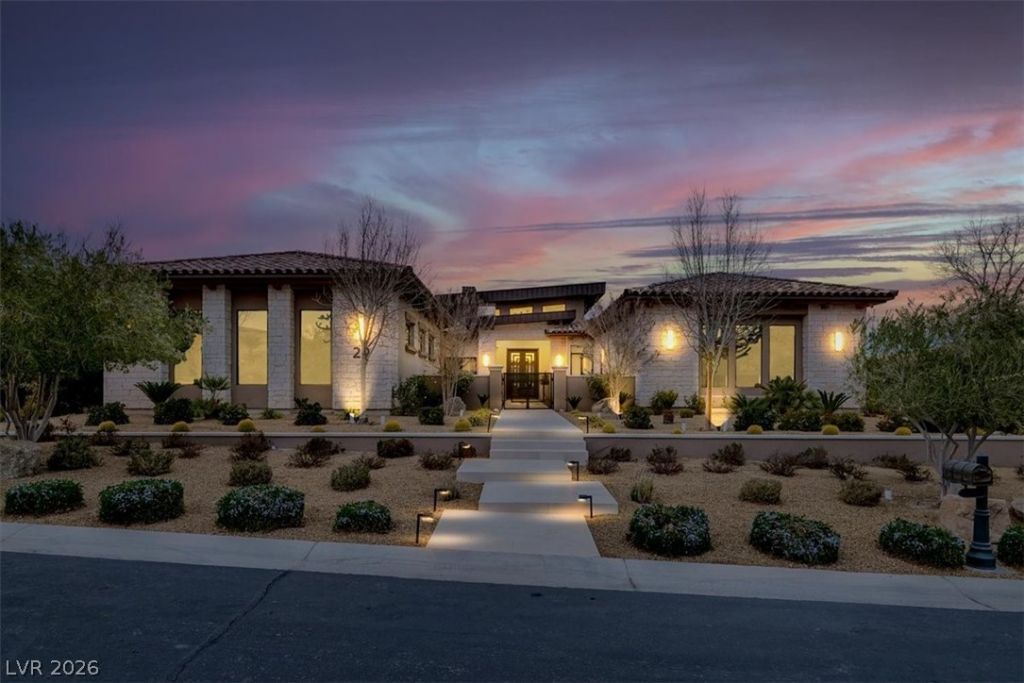 Welcome to this luxurious, single-level masterpiece nestled in the exclusive guard gated Augusta Canyon community of Southern Highlands Golf Club. Situated at the end of a peaceful cul-de-sac, this stunning home offers a truly open-concept design with high ceilings, blending sophisticated luxury and modern comfort. With 5 spacious bedrooms and 7 meticulously designed bathrooms, this home provides ample space for both relaxation and entertainment. The gourmet kitchen is a chef's dream, equipped with high-end appliances that promise both function and style. Step outside into your own private paradise featuring lush grass, fruit garden, a breathtaking pool and spa with a Wynn Hotel-inspired waterfall, perfect for unwinding or hosting guests. Convenience is key with dual driveways and a 5-car garage, providing plenty of space for your vehicles and storage. This is more than just a home; it's a lifestyle.
